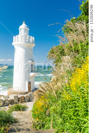 「青森県」鮫角灯台秋の風景 種差海岸