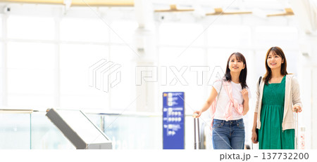 空港に到着した女性2人組 「撮影協力:関西国際空港(KIX)」