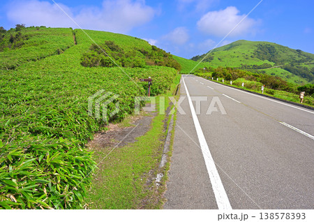 伊豆半島の伊豆山稜線歩道 車道に交わる歩道 古稀山より望む達磨山