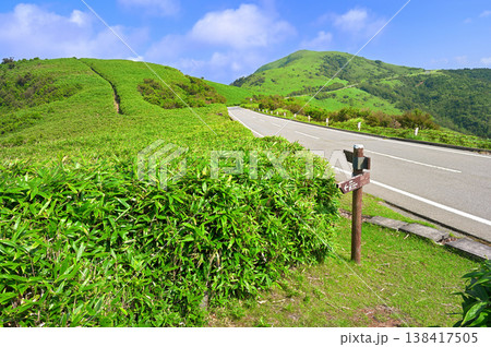 伊豆半島 夏の伊豆山稜線歩道 西伊豆スカイラインの古稀山の入口