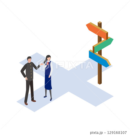 シンプル イラスト 人生の帰路に立つ制服の男の子と女の子