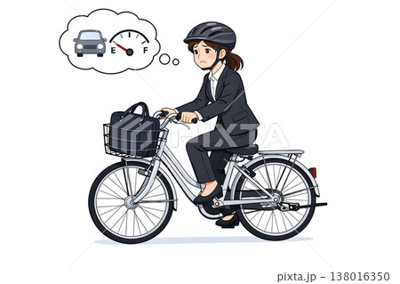 自転車通勤する若いビジネススーツの女性