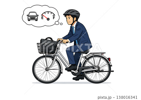 ガソリン不足により自転車で通勤する男性