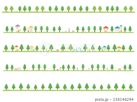 ライン素材-並木・郊外イメージ