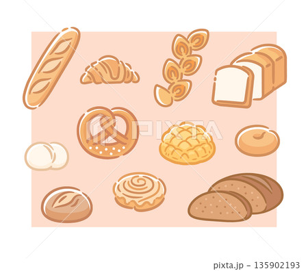 パンとベーカリーのアイコンイラストセット ベーカリー素材、パン、焼き菓子のベクター素材