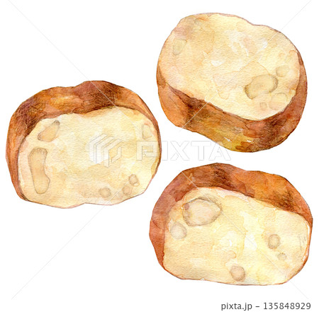 ベーカリーイラスト素材|焼きたてパンの水彩セット