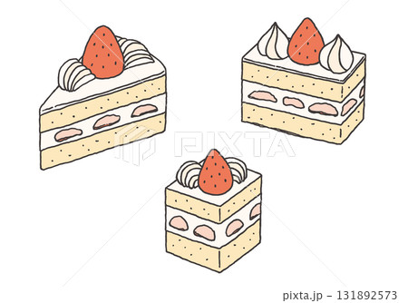 ショートケーキのイラストアイコン(ケーキ・スイーツ・食べ物メニュー素材)