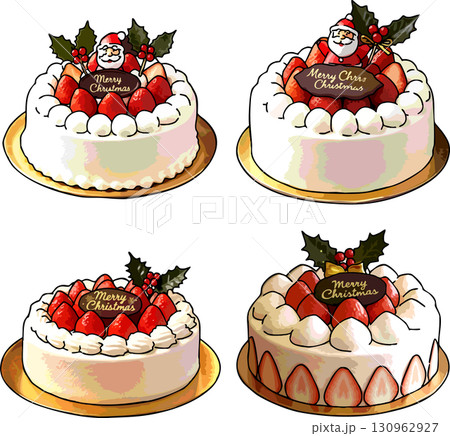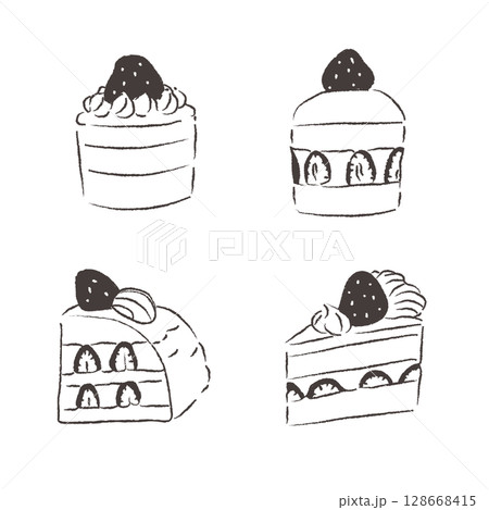 苺やチーズ、チョコレートなど様々なショートケーキのイラストセット