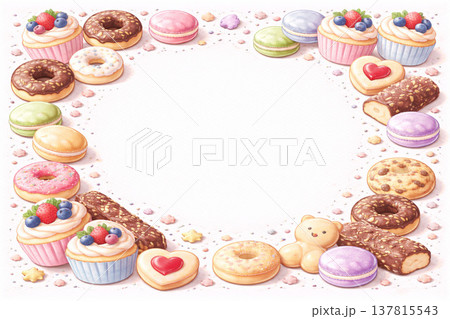 スイーツシリーズ:お菓子詰め合わせの装飾フレーム