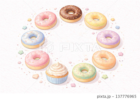 スイーツシリーズ:ドーナツを円形に配したポップな背景