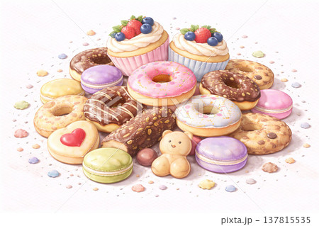 スイーツシリーズ:ミックスお菓子の贅沢な山積み俯瞰