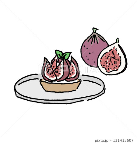 ぶどうとマスカットのタルトケーキのカラフルイラスト