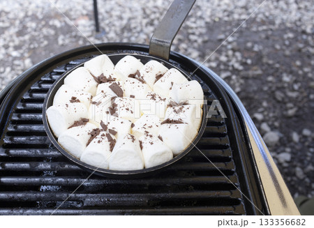 焚火でジャンボ焼きマシュマロをするイメージ アウトドアイメージ