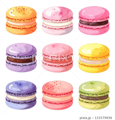 マカロンの手描き水彩画セット2