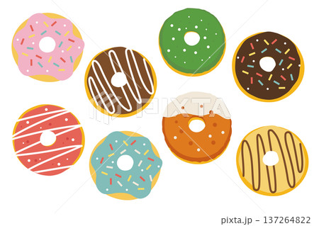甘いドーナツのカラフルなバリエーションセット 装飾 素材 かわいい ラインアート