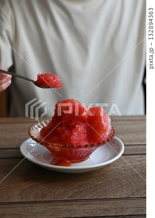 冷たい夏のカキ氷スイーツ(スイカアイス)