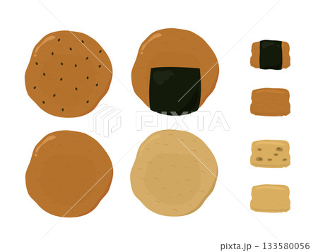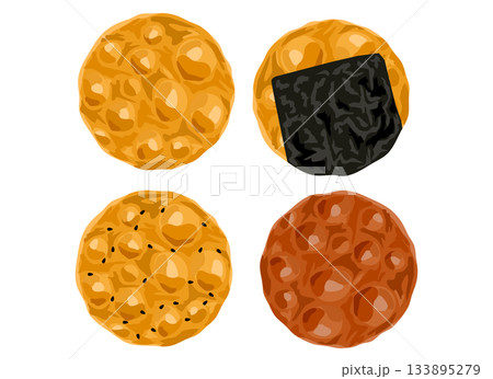 おせんべい(のり付き・醤油味・ごま入り)のイラスト