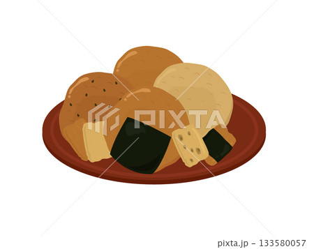 イラスト素材: 岩手名物の南部せんべいと袋入り煎餅のイラスト