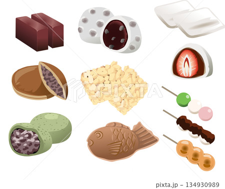 日本のスイーツと和菓子の手描きアイコンイラストセット EPS版は線の太さ等編集可能