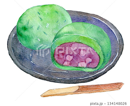 水彩イラスト 手書きイラスト よもぎ餅