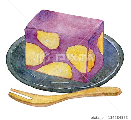 水彩イラスト 手描きイラスト 栗蒸し羊羹