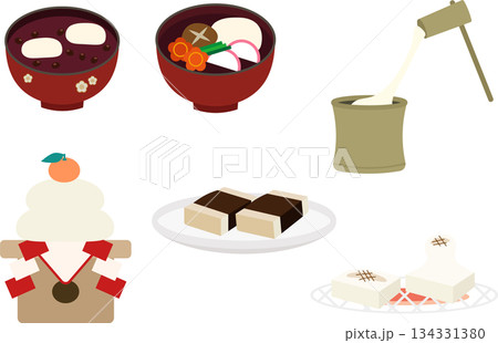 お餅イラスト素材セット(おしるこ・お雑煮・餅つき・鏡餅・焼き餅・磯辺焼き)