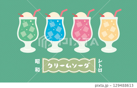 かわいいクリームソーダのアイコンセット 昭和レトロ メロンソーダ