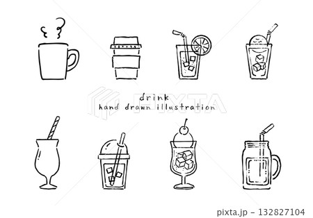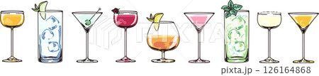 カクテルの手描きイラストステッカーセット バー、ホテル、ナイトクラブ素材