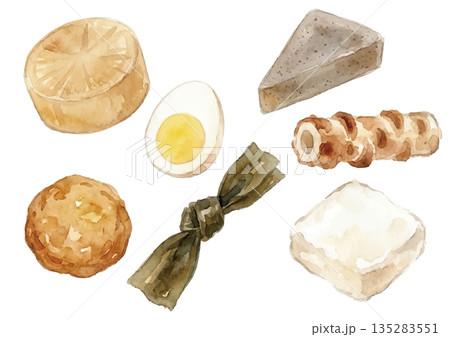 おでん具材 手描き水彩風イラストセット