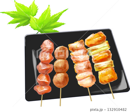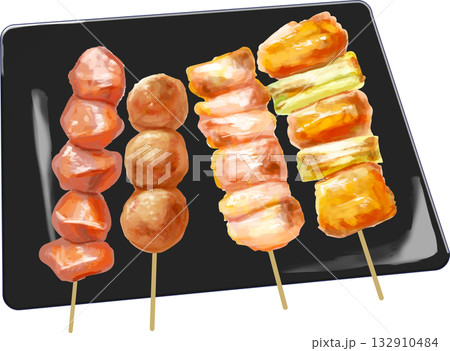 焼き鳥盛り合わせの、焼き鳥、白背景、ベクターイラスト
