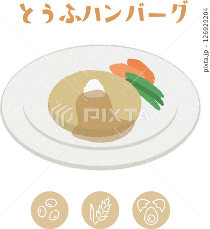 学校給食の豆腐ハンバーグとアレルゲン表示アイコンのイラスト