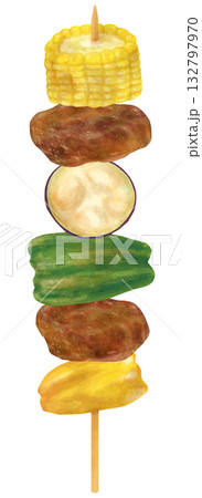バーベキュー の串 パプリカ、ピーマン、なす、トウモロコシ