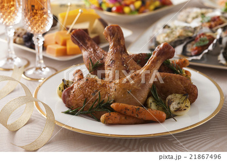 ローストチキンとパーティー料理