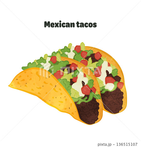たっぷりの具材が詰まったタコスの手書き風ベクターアイコンイラスト