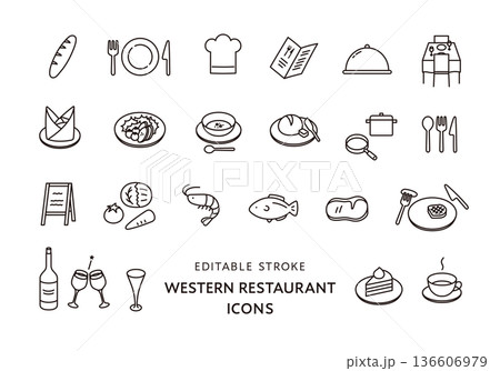 洋食店にまつわるアイコンセット(モノクロ)