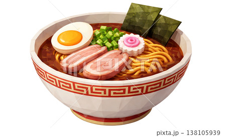 もやしたっぷり味噌ラーメンのローポリゴンイラスト