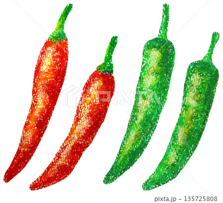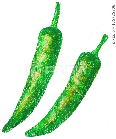 赤唐辛子と青唐辛子のイラストセット オイルパステル画