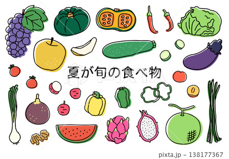 夏の季節野菜を集めたイラストセット