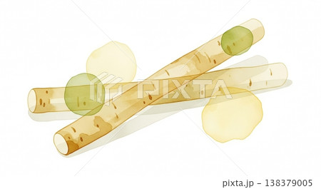 みずみずしく新鮮なごぼうの淡い水彩イラスト 柔らかいタッチのナチュラル野菜素材