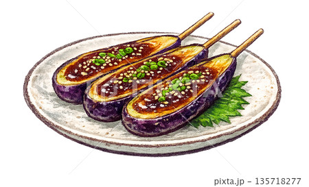 なすの田楽のクレヨンイラスト和食惣菜