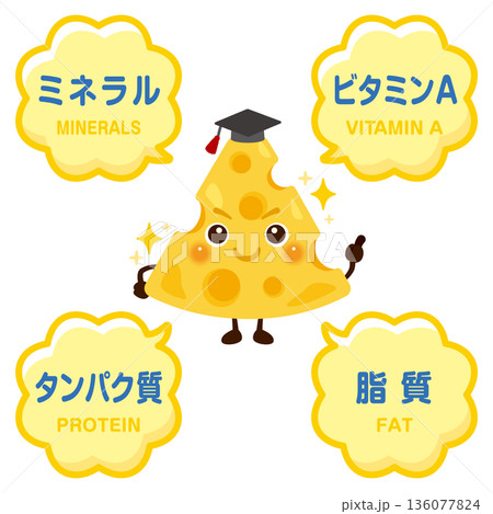チーズのキャラクターとチーズに含まれる成分イラスト