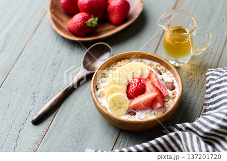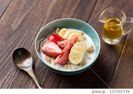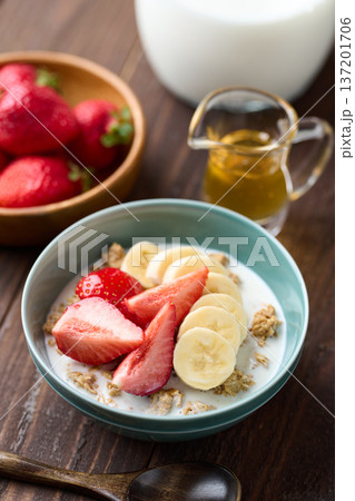フルーツをトッピングしたシリアル