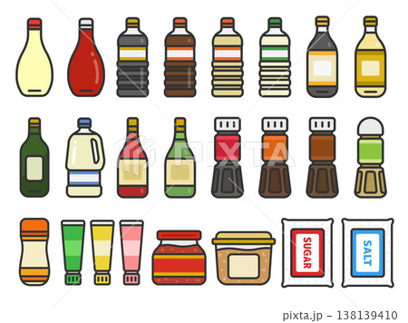 いろいろな、調味料のアイコンのイラストセット