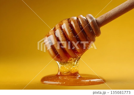 ハニーディッパーから垂れる蜂蜜(健康・自然食品・キッチン)