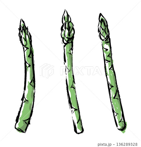 アスパラガスのイラスト (筆タッチ・春野菜) シンプル