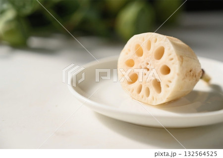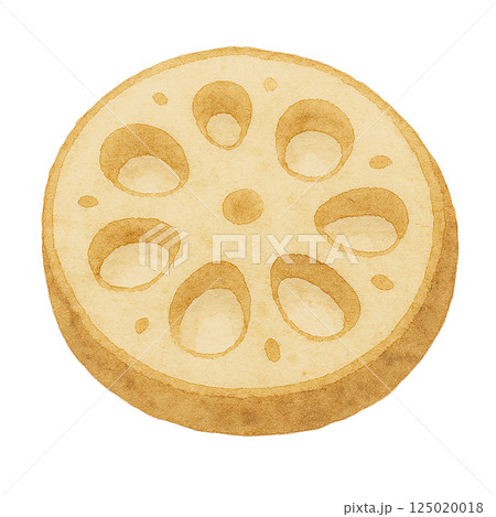 水彩で描いた切り口の見える蓮根のイラスト【手描き】白バック 透過背景 コピースペース