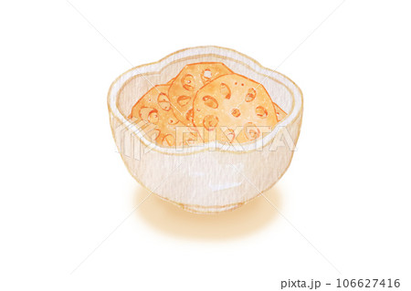 家庭的で素朴な自家製の「蓮根のきんぴら」水彩画風