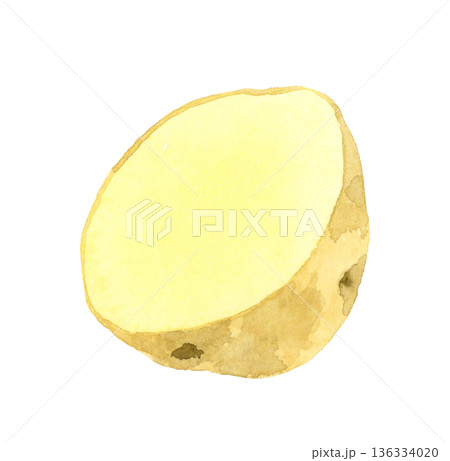 半分にカットしたじゃがいも 野菜の手描き水彩イラスト素材