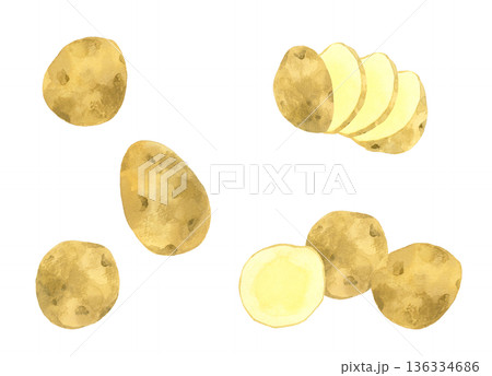 水彩画、じゃがいものイラストセット