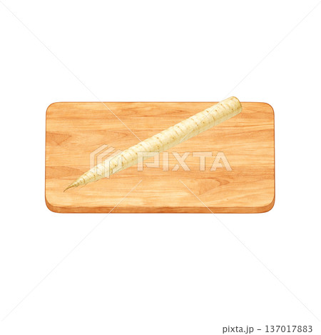 ごぼうと木製まな板 水彩シンプル 横構図 切り抜きPNG